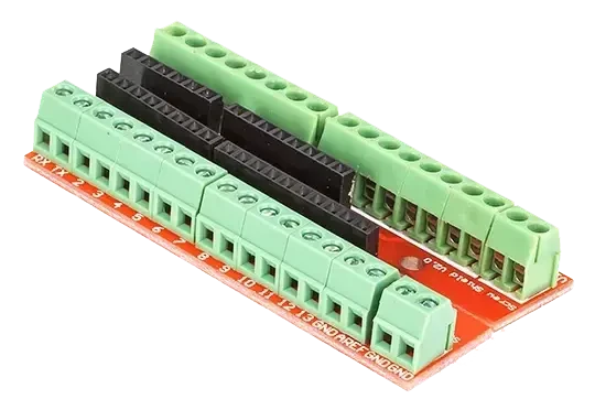 Ця плата розширення дає змогу зручно під'єднувати до плати Ардуїно Uno різні пристрої, використовуючи гвинтові роз'єми.